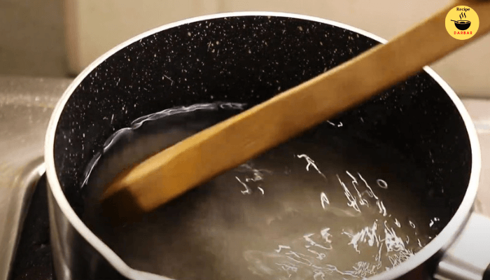 - Heat a saucepan. Add the same quantity of sugar & water. Mix & bring to a boil.
