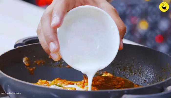 - Mix everything gently, and the oil rises slightly. Add ¼ cup of malai and 1 cup of water, cover the lid, and simmer 5 to 7 minutes on a low flame, so the paneer soaks up the flavours.